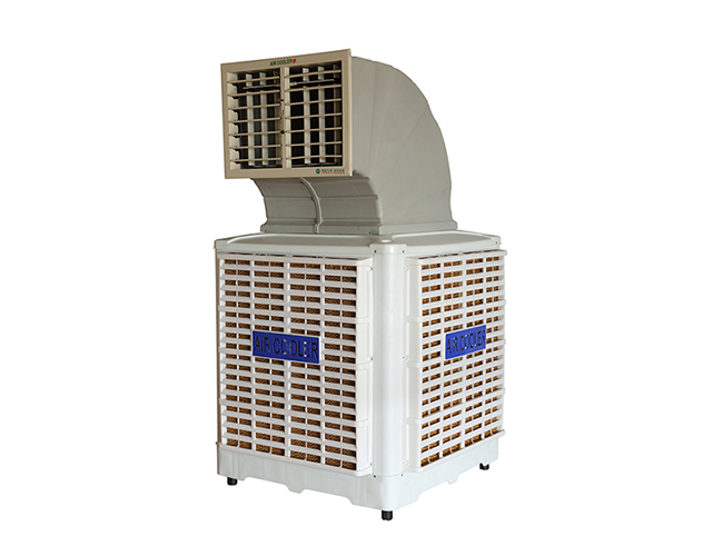 蒸发制冷是一种高效、经济、环保的制冷方式。其基本原理类似于炎炎夏日从泳池中上到池边后人体感受到的凉意。由于皮肤表面有水,风吹过后会使体表温度降低,所以人们会产生凉爽舒适的感觉。 冷风机即是通过水蒸发使空气温度降低。热风经过冷风机中的制冷媒介湿帘时,湿帘中液态的水变成气态的水,这一蒸发作用使空气中的热量被带走,冷风机吹出来的风的温度下降,因此产生制冷效果。